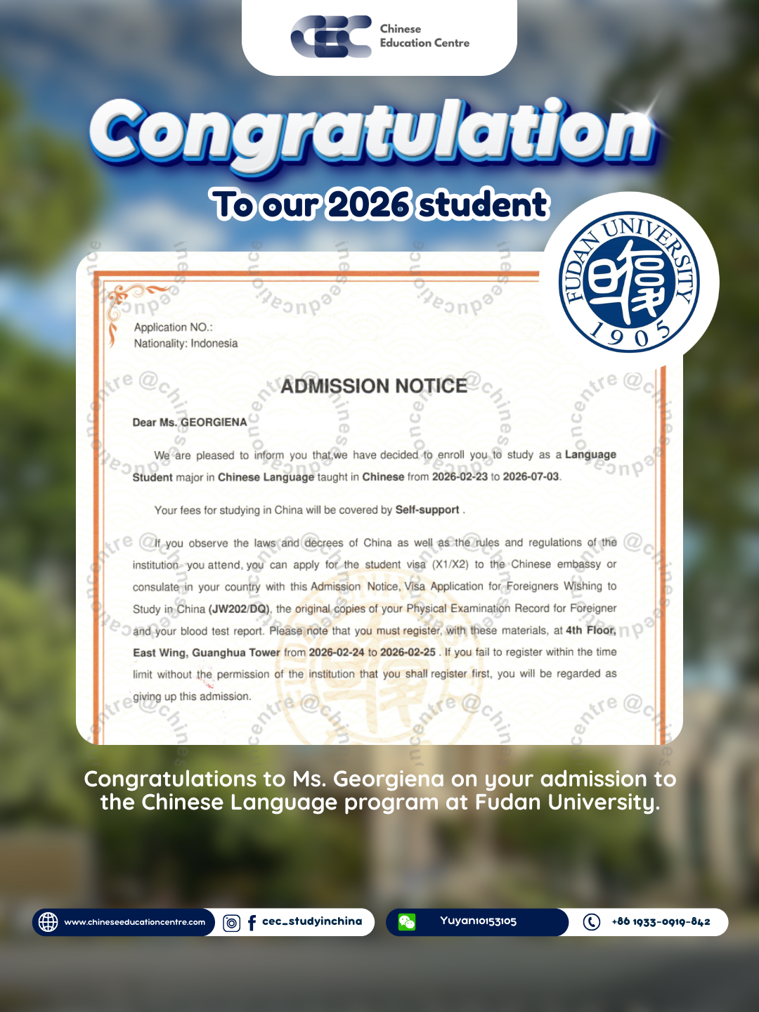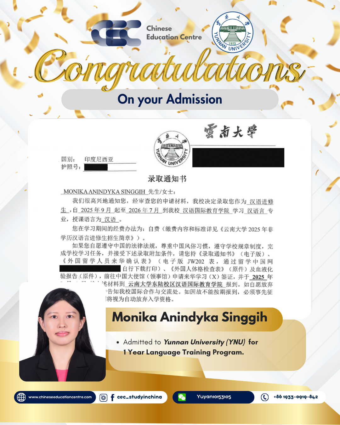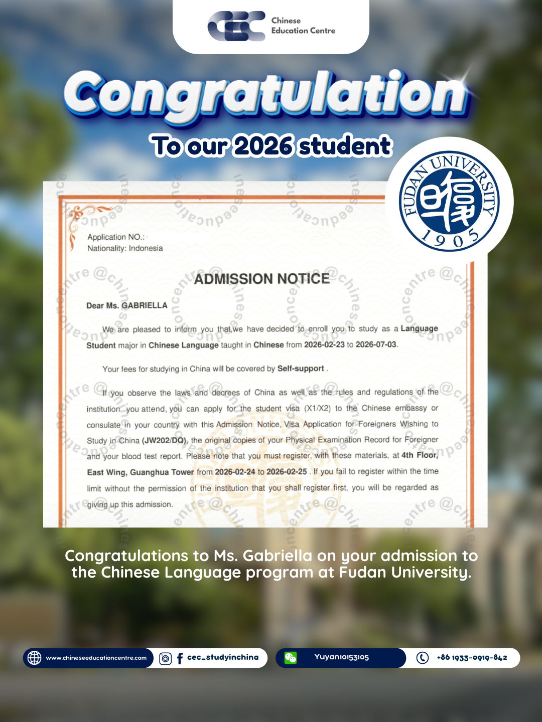 Di bawah ini adalah bukti nyata berupa dokumentasi siswa yang telah berhasil diterima di universitas di China, serta foto-foto saat mereka tiba di China. Hal ini menjadi bentuk transparansi dan komitmen kami dalam memastikan setiap proses berjalan dengan aman, jelas, dan terpercaya hingga siswa benar-benar sampai di tujuan.
